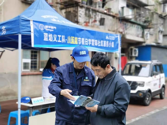 當(dāng)天一大早,“小藍(lán)帽”們就在小區(qū)內(nèi)搭設(shè)起便民服務(wù)站,積極為過往的小區(qū)居民提供灶具免費維修、燃?xì)馐褂脝栴}解答等服務(wù),現(xiàn)場服務(wù)居民50余次。同時,他們還通過擺放安全展示牌、發(fā)放《燃?xì)獍踩脷馐謨浴返刃麄餍问?,進一步增強小區(qū)居民安全用氣意識。