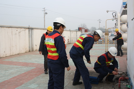12月6日下午15時50分,安慶港華燃氣集賢關(guān)CNG加氣站內(nèi)響起急促燃氣報警器聲。緊接著,加氣工迅速關(guān)閉加氣機應(yīng)急球閥停止加氣,禁止車輛移動,并大聲呼喊:“漏氣了,大家快撤到站外安全地帶?!?/span>15:52分,站內(nèi)司乘人員在加氣工的指導(dǎo)下,全部撤到站外,并在站外拉起警戒線。16:00,站內(nèi)搶修人員通過對泄漏現(xiàn)場的初步判斷泄漏來自2#壓縮機處,立即停止壓縮機工作。如此同時,當班班長立即把現(xiàn)場情況向站長報告。16:10分,接到指令的站、部門負責(zé)人帶領(lǐng)部門應(yīng)急行動小組趕到現(xiàn)場。經(jīng)過各行動小組緊張、有序的處置,僅用20分鐘的時間就成功檢查并消除了泄漏——2#壓縮機法蘭處。16:32,現(xiàn)場指揮發(fā)出:“解除警戒,演練結(jié)束”指令。