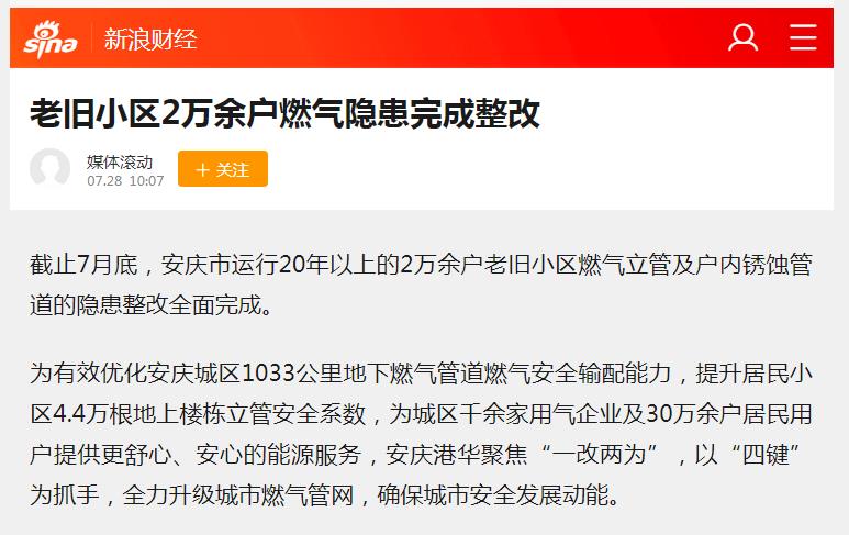 老舊小區(qū)2萬余戶燃?xì)怆[患完成整改(轉(zhuǎn)載于新浪財經(jīng))