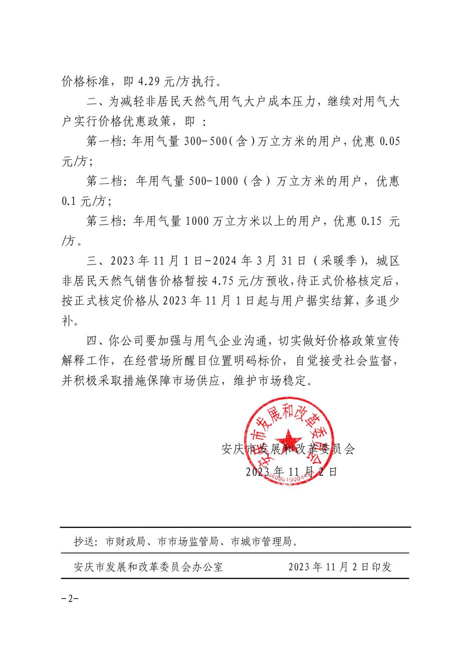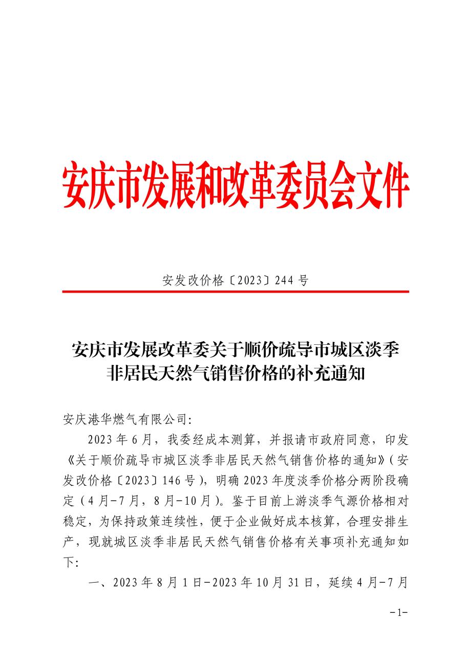 安慶市發(fā)展改革委關(guān)于順價疏導市城區(qū)淡季非居民天然氣銷售價格的補充通知