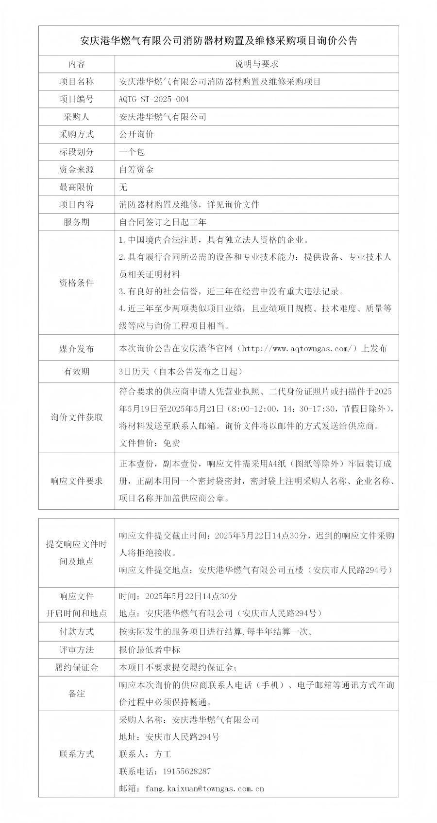安慶港華燃?xì)庥邢薰鞠榔鞑馁?gòu)置及維修采購(gòu)項(xiàng)目詢價(jià)公告