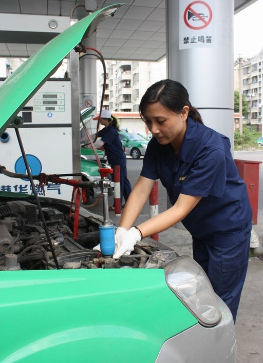 我市出租車因車型原因,車用氣瓶容積相對其它城市小,天氣炎熱,出租車開啟空調(diào)后,用氣量明顯增加,加氣的次數(shù)也由平日的一天2次增加到一天3-4次。港華路加氣站也因臨近市區(qū),大部分車主習慣扎堆到這里加氣。另外由于出租車交接班的習慣,一般上午10:30-12:00,下午4:30-6:00加氣的車輛會明顯增加,成為加氣的高峰時段。針對這些情況,安慶港華高度重視,積極采取有效措施進行疏導和分流,避免出現(xiàn)出租車加氣排長隊現(xiàn)象。